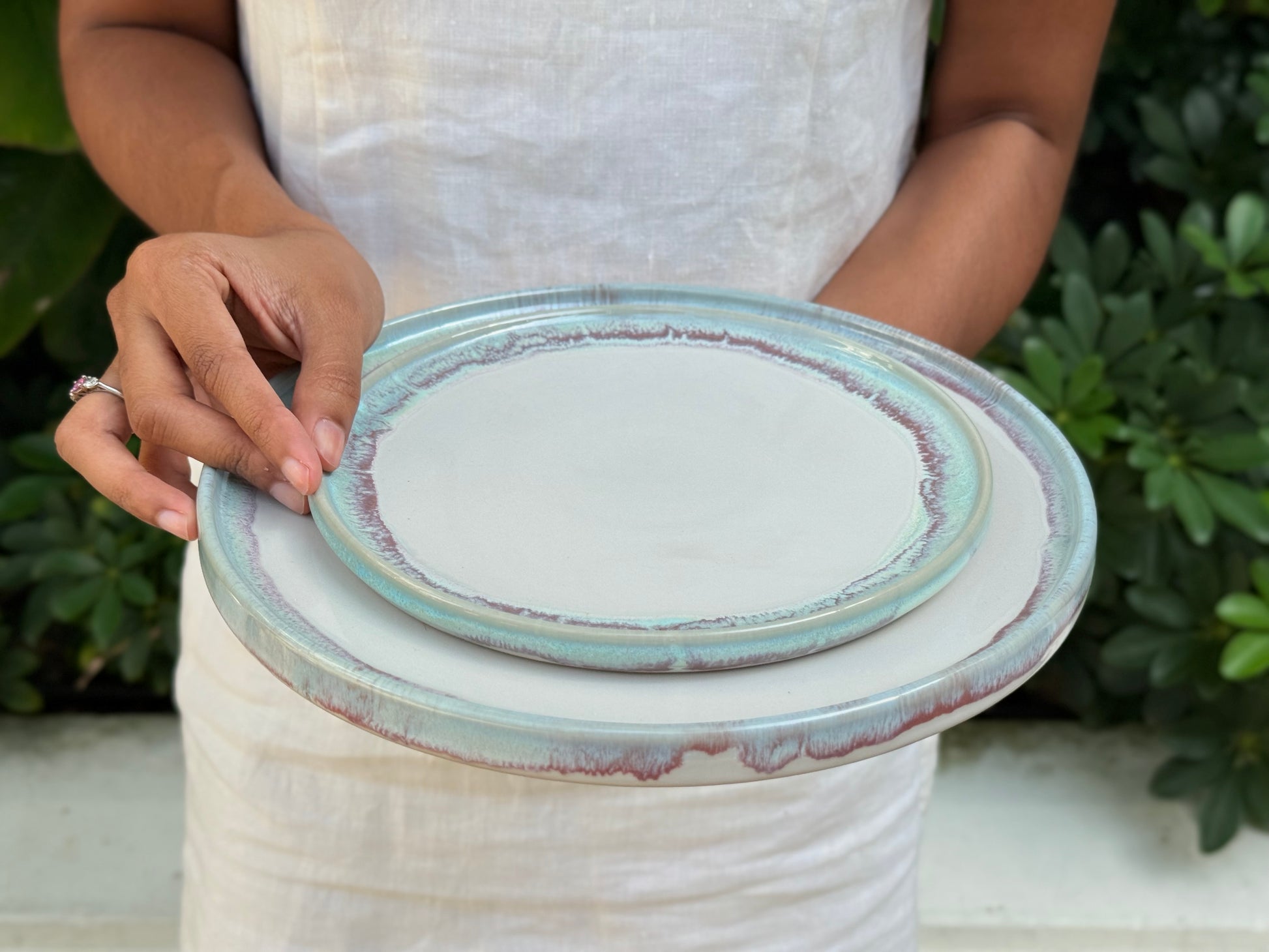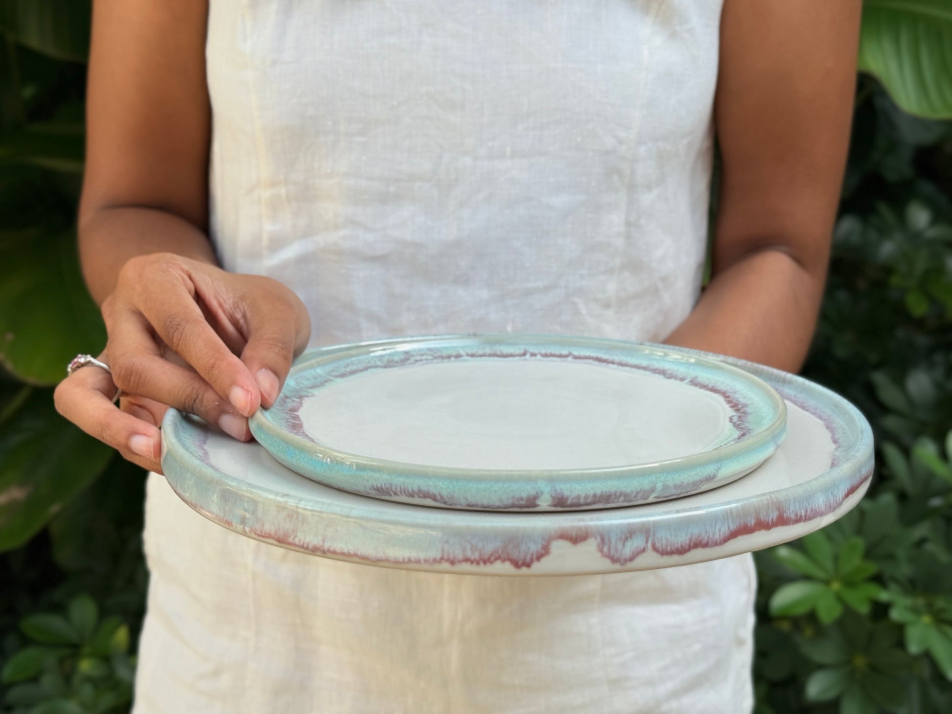 Our iconic dinner plate. Designed for everyday use, with a delicate lip ensuring its versatility from saucy curries to stand out salads. Made to last, it’s perfectly stackable and dishwasher, microwave, and oven safe. Proudly handmade by our wonderful craftswomen from Vietnam’s first female owned and led pottery studio to export.
