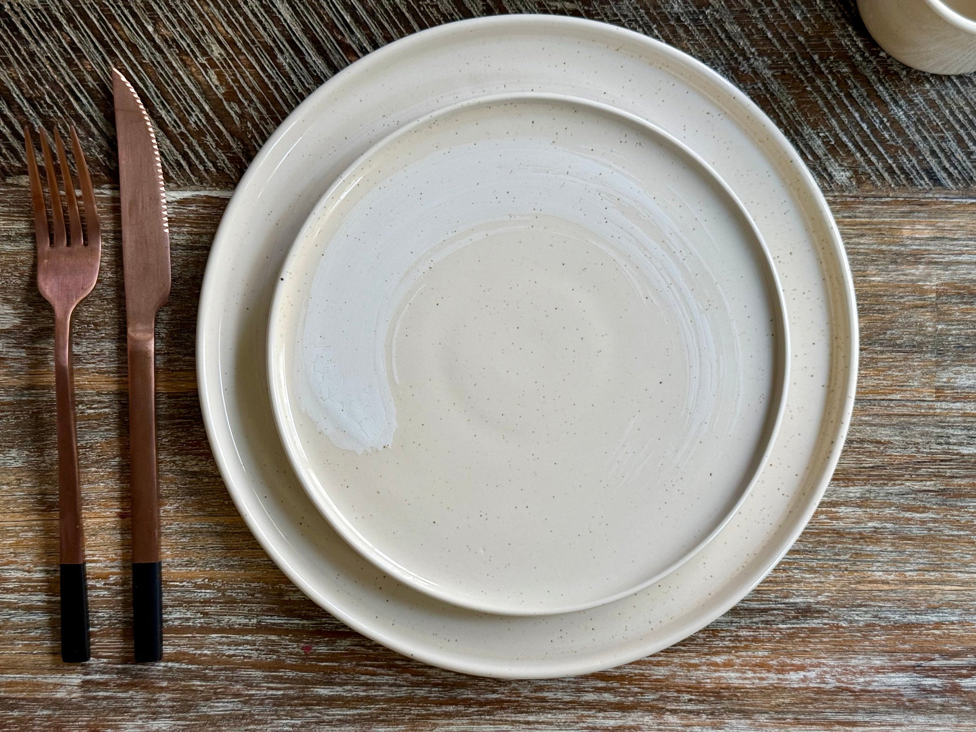Our iconic dinner plate. Designed for everyday use, with a delicate lip ensuring its versatility from saucy curries to stand out salads. Made to last, it’s perfectly stackable and dishwasher, microwave, and oven safe. Proudly handmade by our wonderful craftswomen from Vietnam’s first female owned and led pottery studio to export.