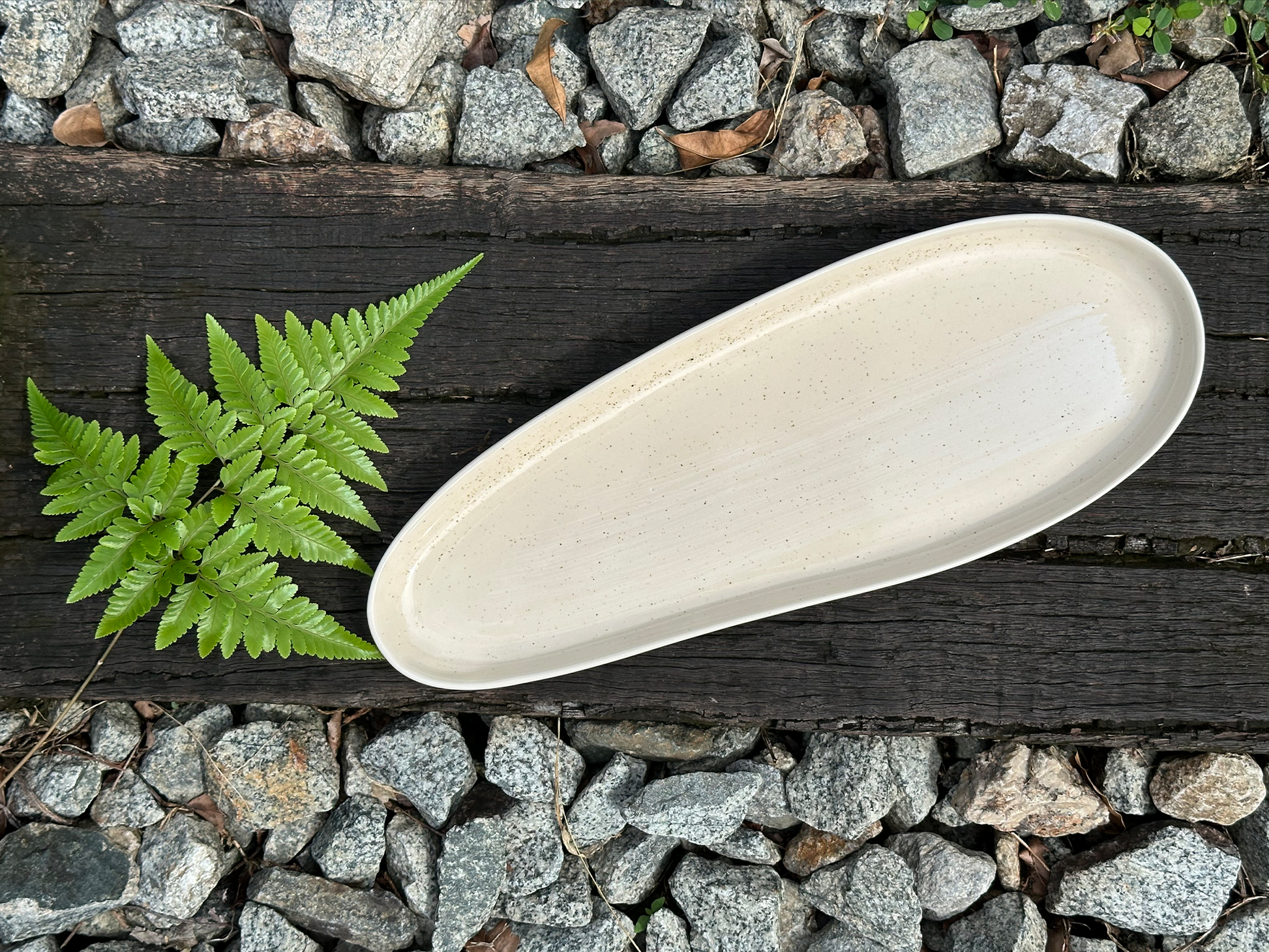 A free spirit. With its organic shape and flowing contours, this platter brings a sense of natural elegance to your table. Perfect for serving appetisers, mains, or desserts, its versatile design and curved lip makes it as functional as it is striking.